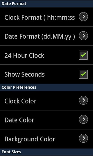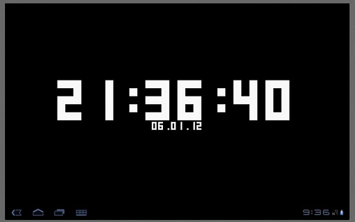 Keep It Small Simple (KISS) lead this application design. A simple full screen digital clock with free size, color, hour and date format to choose from. Optionally you may disable screen powersaving and turn your device into a true clock.