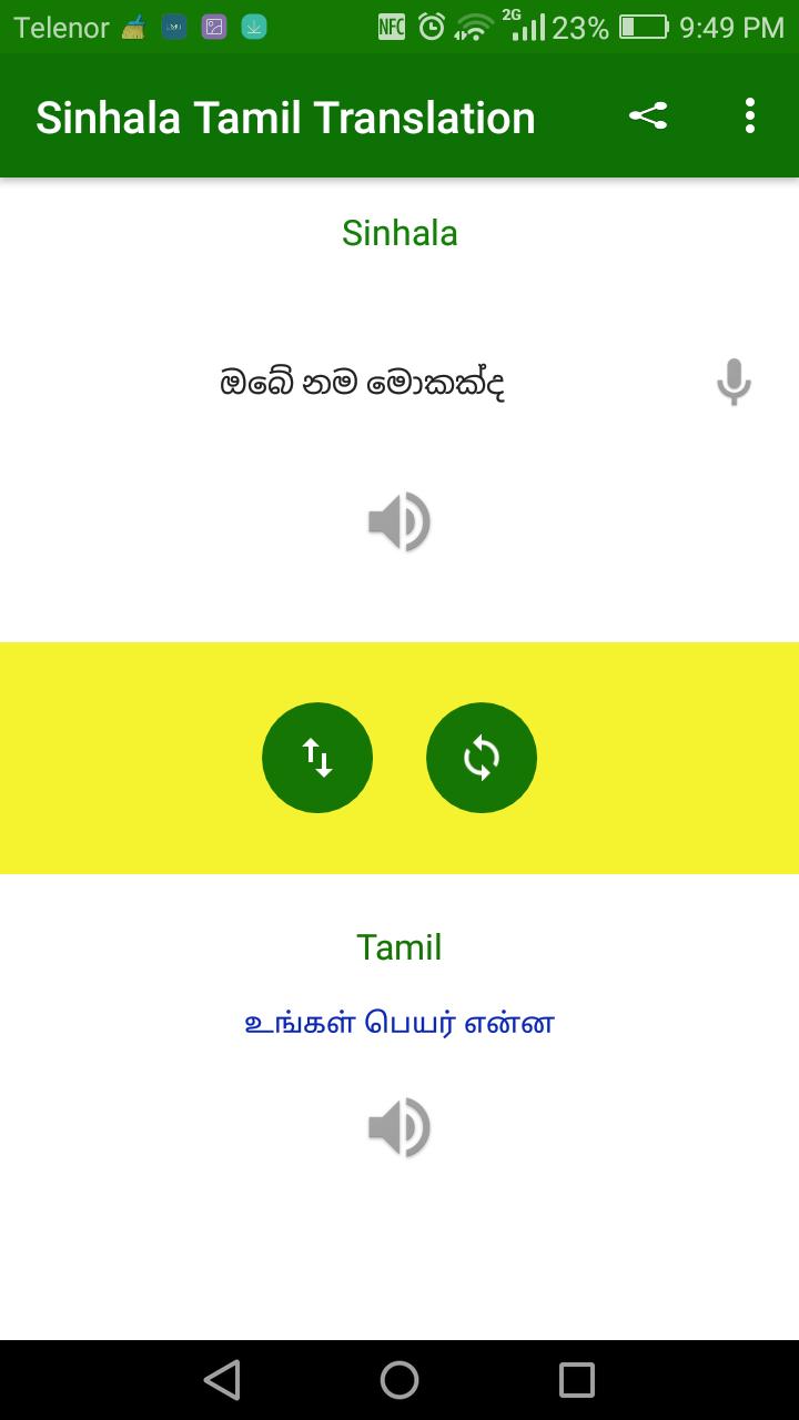 පරිවර්තනය කිරීමට සිංහල, දෙමළ හා දෙමළ සිංහල සමග මෙම නිදහස් යෙදුම. එය කළ හැකි, පෙළ පරිවර්තනය, වචන හා වාක්ය භේදය තත්පර. ඒ වගේ ශබ්ද කෝෂය සහ පාවිච්චි කරන ලද වචන, අර්ථය හා නිවැරදි උච්චාරණය.