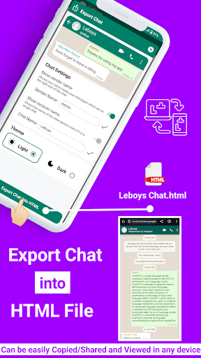 = & gt;Xuất các cuộc trò chuyện sang định dạng HTML với giao diện người dùng đẹp để chia sẻ chúng với bất kỳ ai.