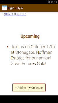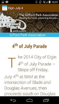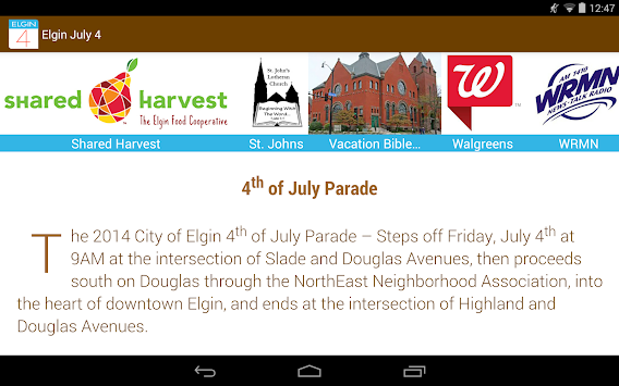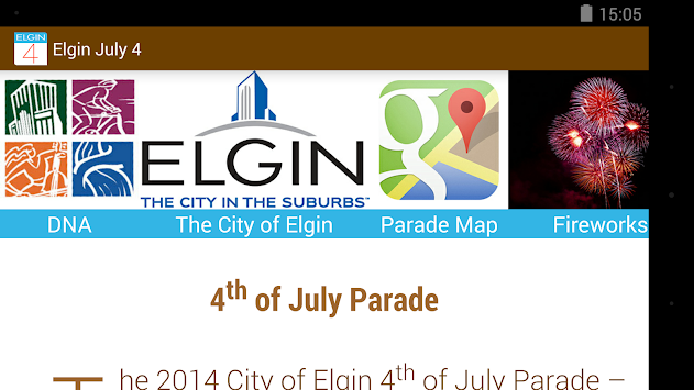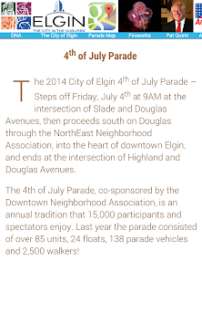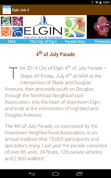 This is the official Elgin July 4 App, which lists Parade participants, pictures, contact info, and extensive descriptions.