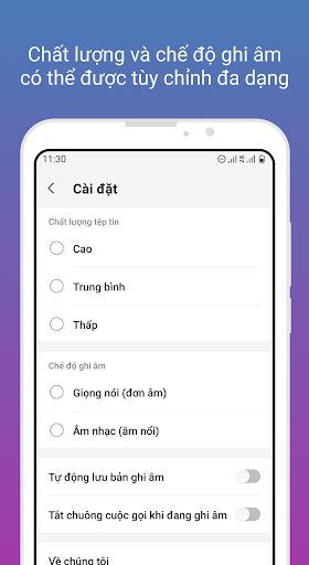 - Chất lượng và chế độ ghi âm có thể được tùy chỉnh đa dạng;