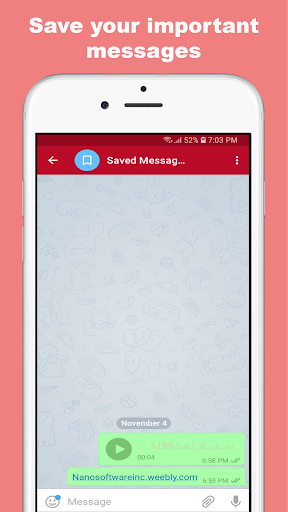 • Saved Messages: Store Messages, Media and Files to check it later or access it from any of your devices.