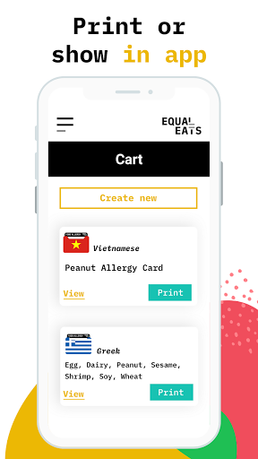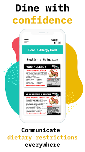 Có dị ứng thực phẩm bằng văn bản để tránh những sai lầm nguy hiểm tại một nhà hàng. Dùng bữa với sự tự tin khi biết dị ứng thực phẩm hoặc hạn chế chế độ ăn uống của bạn đang được truyền đạt rõ ràng. Tạo thẻ cá nhân trong 50 ngôn ngữ, chọn từ 500 chất gây dị ứng. Tận hưởng thức ăn ở mọi nơi biết rằng thông điệp quan trọng của bạn đã được dịch bởi một dịch giả chuyên nghiệp và được xem xét bởi người bản ngữ.