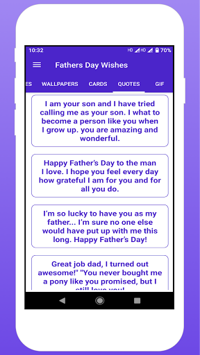 - This app have Latest Fathers Day Wishes Quotes for wish your father.