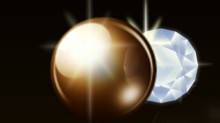 Two types of metal spheres as well as several diamonds elegantly move from left to right and back, jumping smoothly in front of five pleasant backgrounds.