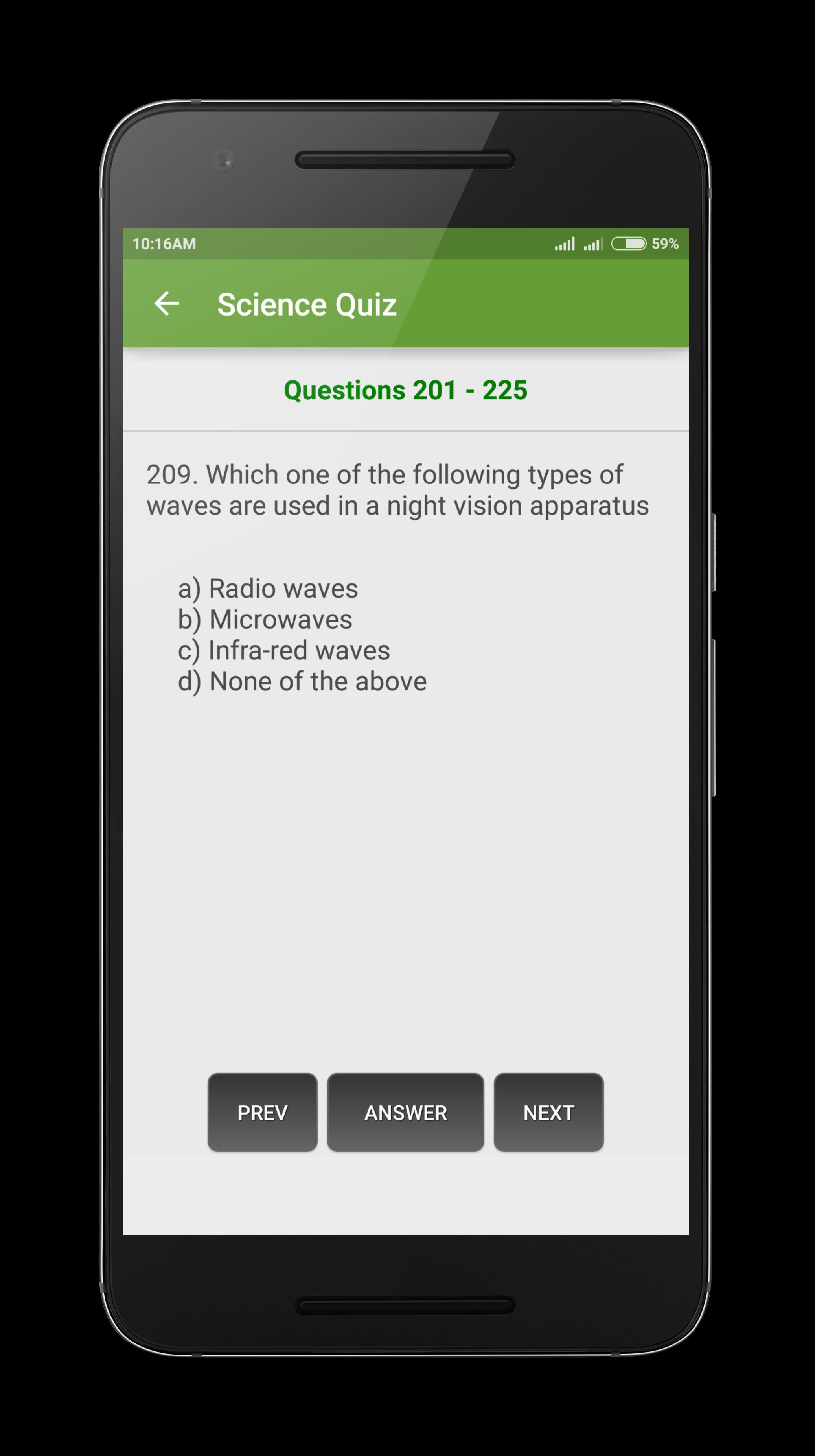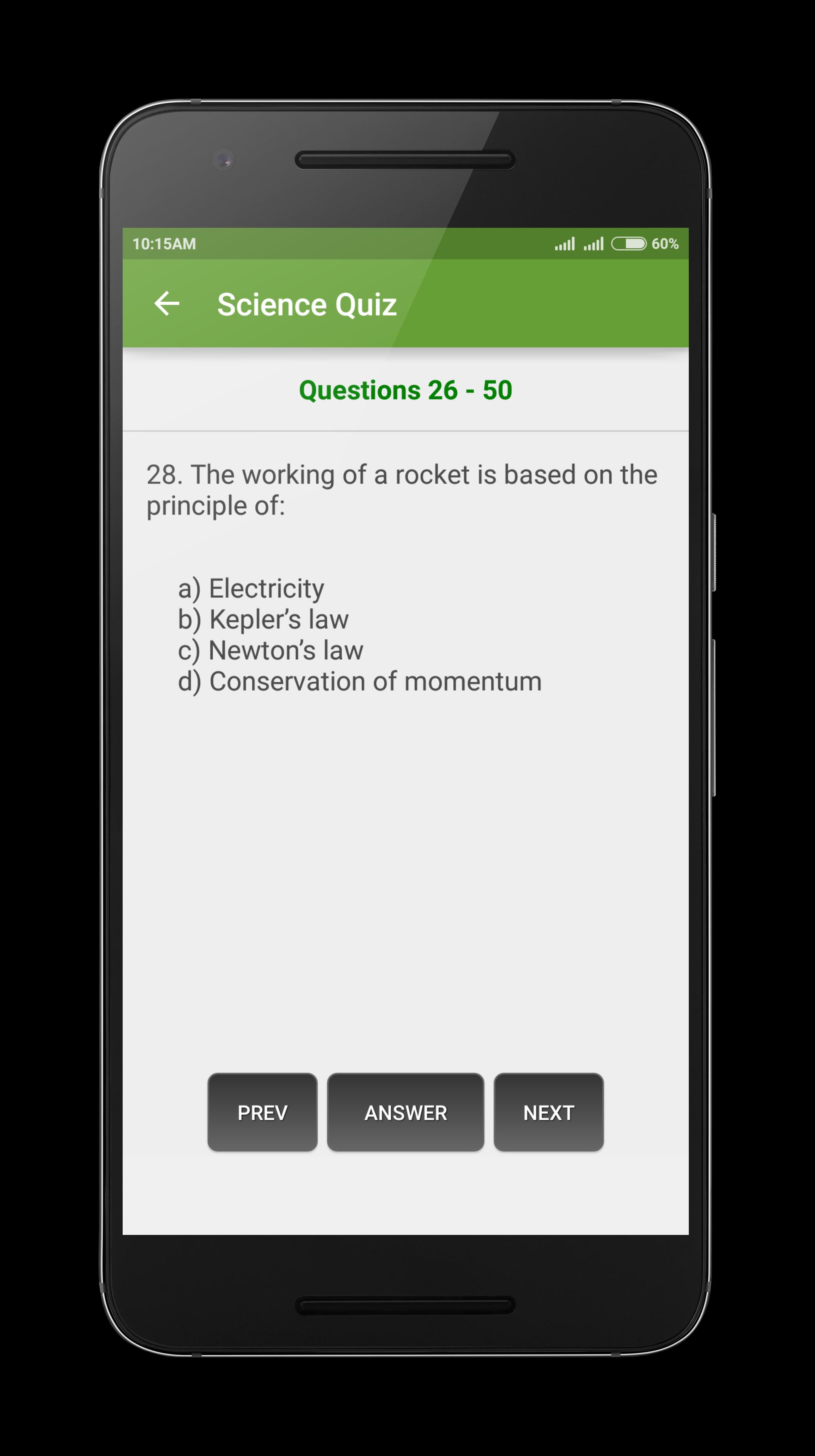 Check out our new General science quiz app contain more than 200+ questions on basic science. This application help the students of all Standards to learn about physics, mechanics, computers and the internet, electronics, weather, animals, medicine or the human body, biology and other related questions in science. These questions will be useful for your practice for UPSC exams, state PSC exams, entrance exams, bank exams, or any other competitive exams.