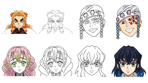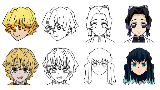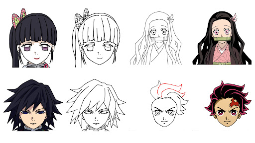 More than 16 lessons on how to draw characters from the anime Demon Slayer.