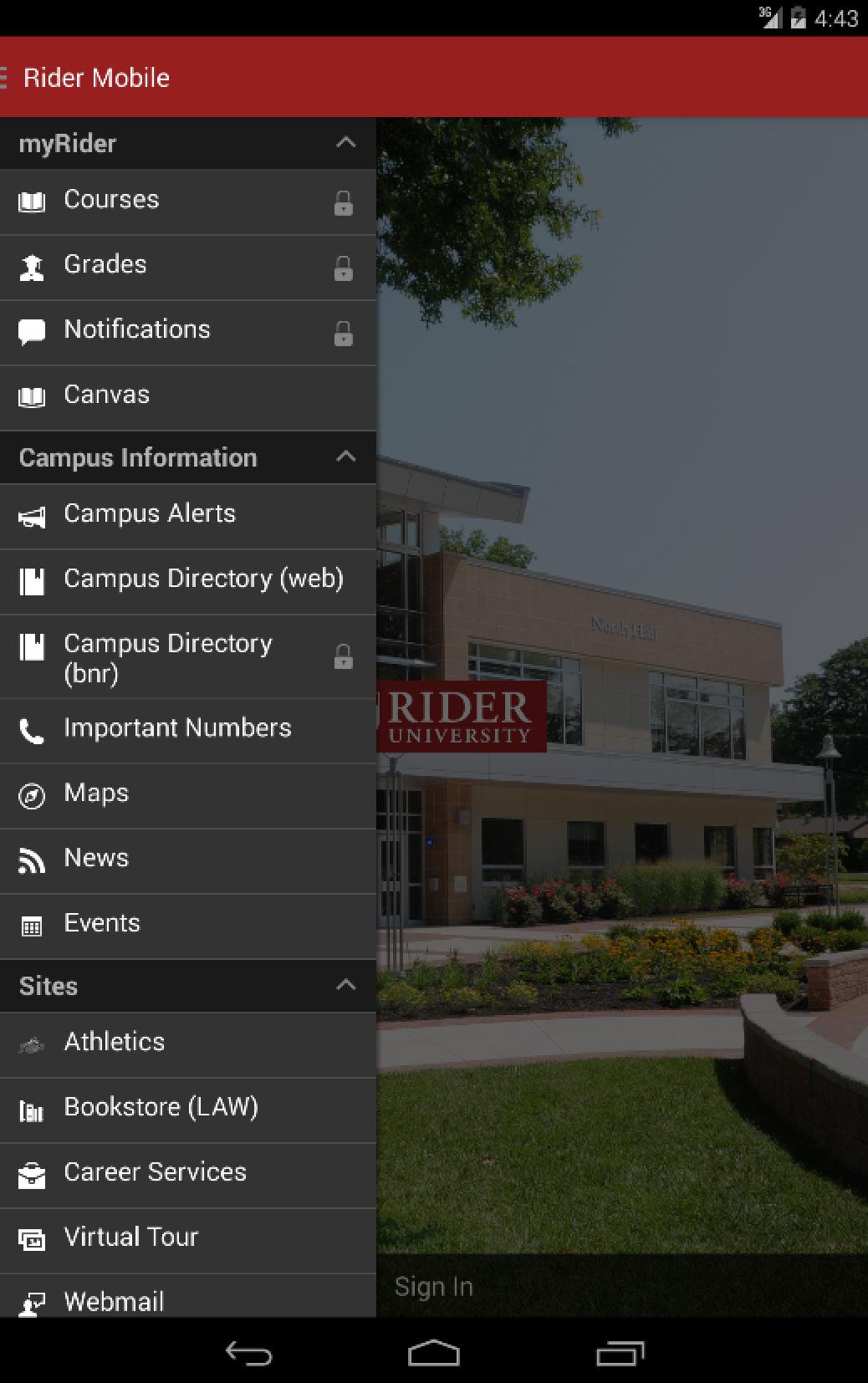 Note: Non-credit courses are not available in the mobile app. Visit the http://myrider.rider.edu via web browser for a more comprehensive display of grades.