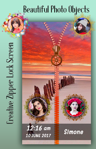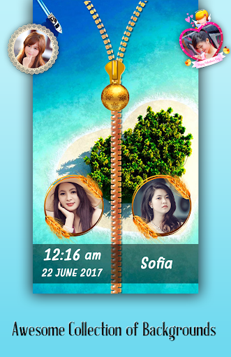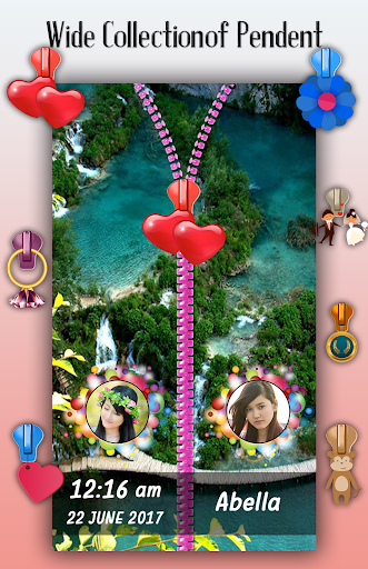 Best part of zipper lock screen is you can set couple photo on lock screen with awesome and creative objets. Even write your name on zipper lock screen. you can use it as couple zipper lock screen