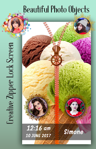 - HD graphics of ice cream zipper Lock Screen