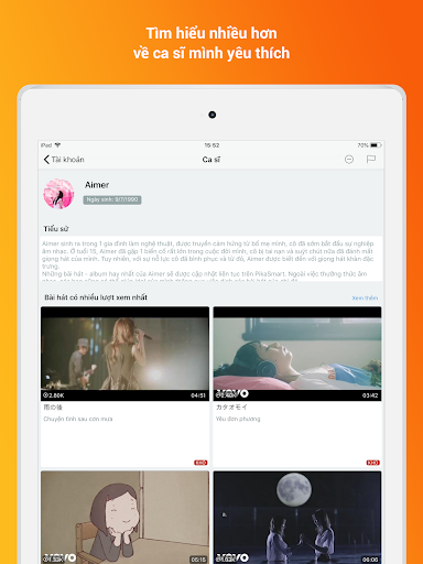 PiPop (tên gọi cũ là PikaSmart) mang đến cho bạn rất nhiều lựa chọn với hơn 1000 bài hát tiếng Nhật, trong đó có sự góp mặt của rất nhiều Ca sĩ/Nhóm nhạc Nhật Bản nổi tiếng như Aimer, Sekai No Wari, Kenshi Yonezu, Wagakki Band hay Nishino Kana… Bên cạnh đó là kho nhạc anime với rất nhiều bài hát để từ các Anime nổi tiếng như One-Piece, Overlord, Tokyo Ghoul...