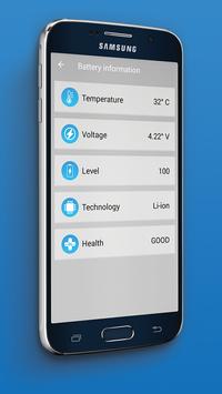 ✓ Detailed battery information within the main screen of the app. You will be able to see the percentage of battery energy as well as Temperature in C°, Voltage of battery and finally the level.