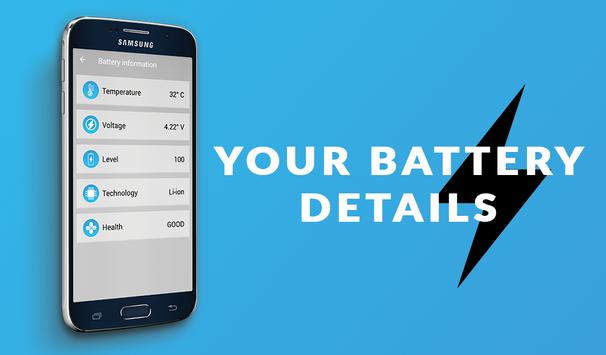 ✓ Inside the Battery details section of our optimize battery app you will be able to find many details and information about you battery life.