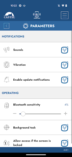 Castel Virtual Card là giải pháp điều khiển truy cập di động qua điện thoại thông minh Bluetooth. Quyền truy cập của bạn bằng cách xóa các ràng buộc của điều khiển truy cập truyền thống. , giống như một huy hiệu cổ điển
