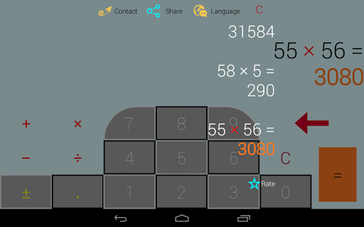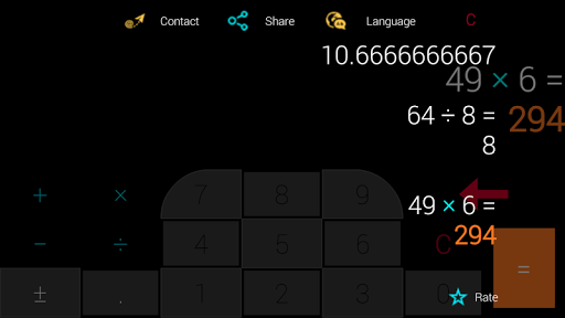 A calculator of a different kind with the four basic arithmetical operations, with a skilful typing and with a different style of calculating history, only the things that you need on a daily routine.
