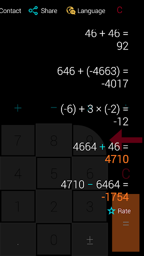★ automatically using parentheses when calculating with negative numbers,