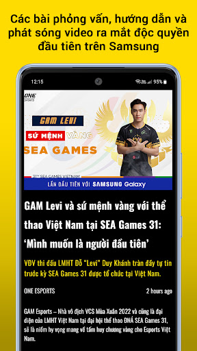 • Ứng dụng ONE Esports cung cấp những hướng dẫn chuyên sâu, các bài phỏng vấn độc quyền và các buổi ra mắt video đầu tiên trên điện thoại Samsung của bạn.