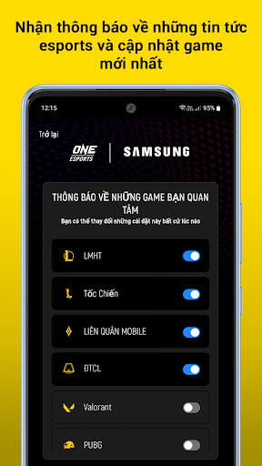 • Nhận thông báo về những tin tức esports nóng hổi và những bản cập nhật mới nhất.