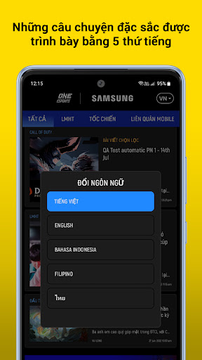 Disclaimer: Ứng dụng ONE Esports chỉ khả dụng trên điện thoại Samsung ở Indonesia, Malaysia, Philippines, Singapore, Thái Lan và Việt Nam.