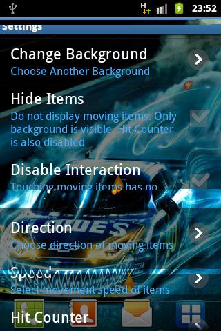 Play, touch and enjoy the interactive game with this Cool Drag Racing live Wallpaper.Hit the animated moving object to increase hit counter.download this Cool Drag Racing Live Wallpaper for FREEYou can go to the settings menu to set configuration (direction interactive items,speed, hit counter, disable feature, etc)This Live Wallpaper has been optimized to consume as little as possible battery power.Features on this app:-5 alternative cool racing Background·4 move direction available to choose·different speed setting·interact with the flying interactive itemskeyword: cool, drag, racing, car, fire, live wallpaper**this app may contains ads**