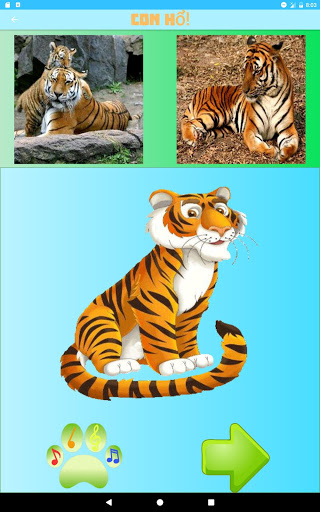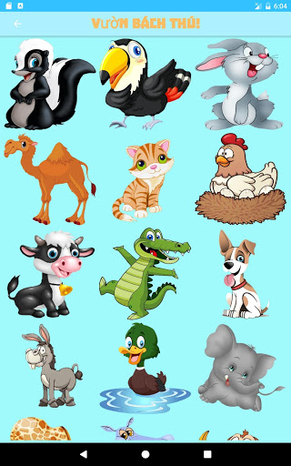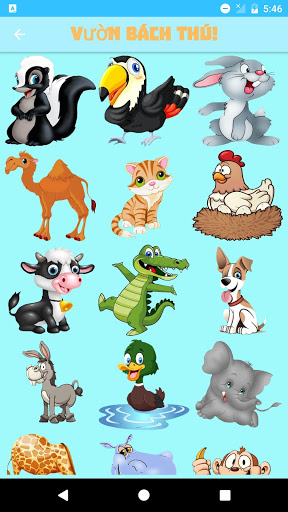 Số động vật hiện tại sẵn sàng cho con của quý vị trong trò chơi là 22: (Con chim tu-căng, con chồn hôi sọc, con thỏ, con lạc đà, con mèo, con gà, con bò cái, con cá sấu, con chó, con lừa, con vịt, con voi, con hươu cao cổ, con hà mã, con sư tử, con khỉ, con chim cú, con gấu trúc, con sóc, con hổ, con chó sói, con ngựa vằn)