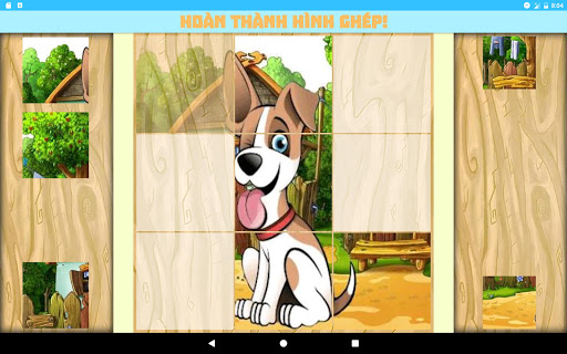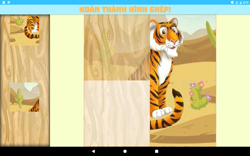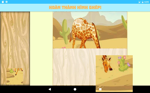 • Trò chơi ghép hình dễ với 4 mảnh ghép, vì lý do giúp mỗi đứa trẻ hoàn thành trò chơi và tiếp tục với mục đích chính của trò chơi là học hỏi về các động vật và nghe tiếng của chúng.