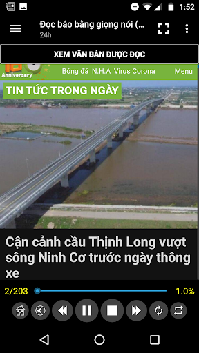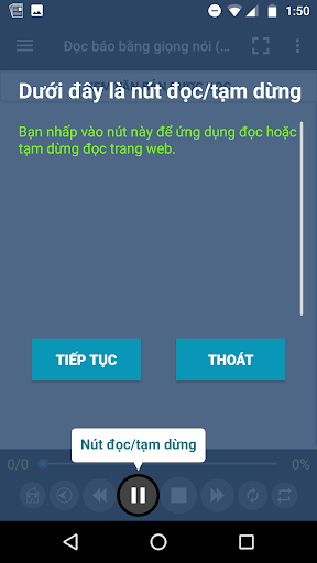 Người dùng có thể dừng đọc, trở về trang chủ, thay đổi tốc độ đọc.