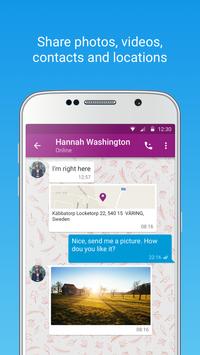 - Sharing of pictures, videos, locations, contacts and more with other iO users