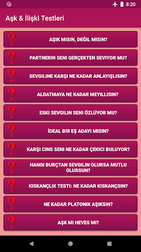 Bạn có nghi ngờ rằng bạn tự hỏi về cuộc sống hoặc mối quan hệ tình yêu của bạn? Bạn có thể tìm thấy câu trả lời cho các dấu hỏi trong đầu bằng cách giải các bài kiểm tra.