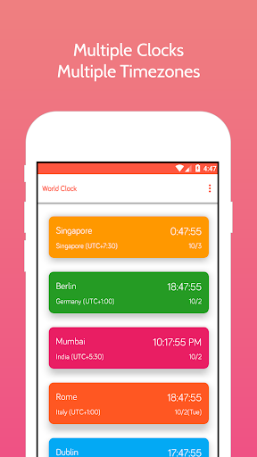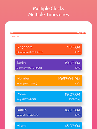 Tiện ích thời gian thế giới miễn phí với hỗ trợ múi giờ địa phương cho hàng triệu thành phố. Thêm đồng hồ với các khu vực thời gian thế giới ngay trên màn hình chính của bạn chính xác theo cách bạn muốn.