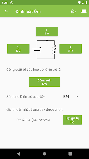 • Hỗ trợ đầy đủ cho dòng điện trở EIA cho tất cả các tính toán;