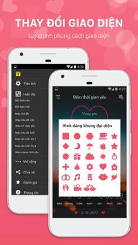 ★ Hiển thị ngày, giờ, phút, giây yêu nhau trên giao diện đồng hồ tình yêu tuyệt đẹp. Từng giây phút trôi qua là những đợt sóng tình yêu trên đồng hồ. Bạn có thể đổi giao diện đồng hồ tình yêu theo ý thích của mình với hơn 30 giao diện dễ thương gồm: trái tim, đám mây, quả táo, gợn sóng, mặt trời, cún con ...