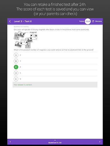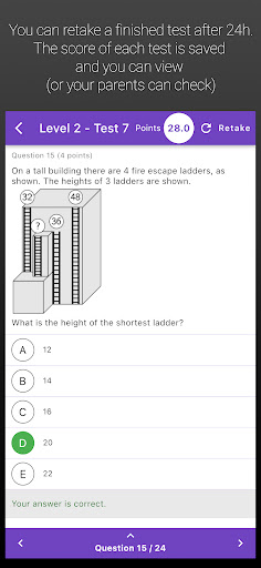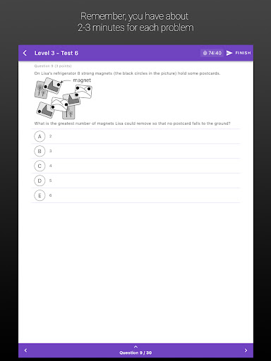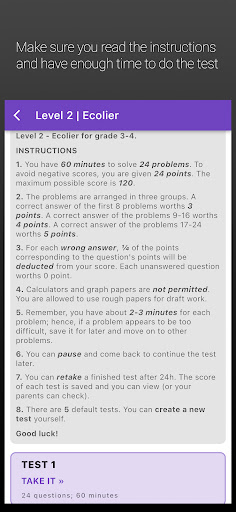 Người dùng có thể chuẩn bị cho IKMC với hàng ngàn câu hỏi được cập nhật hàng tháng với KMATH.Có 6 cấp độ từ tiền Ecolier đến học sinh để thực hành với kiến thức đa dạng từ lớp 1 đến 12.
