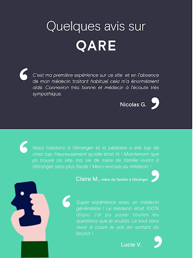 Vous pourrez bénéficier de l'avance de frais ou recevoir une feuille de soins via l'application Qare, à envoyer à l'Assurance Maladie afin d'être remboursé(e).