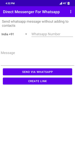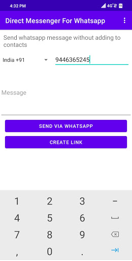 Direct Messenger For Whatsapp is an android app that help you to send whatsapp message without save the number to your contacts. You can directly send the whatsapp message by just entering the number.