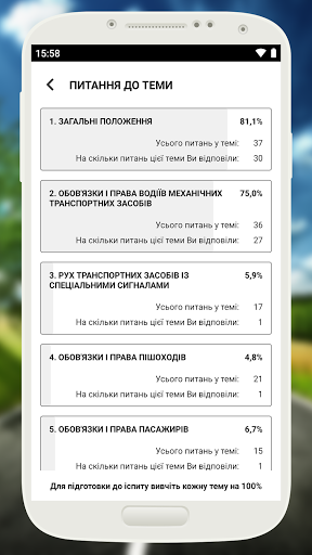 • Тема "Дорожні знаки" розділена на підтеми