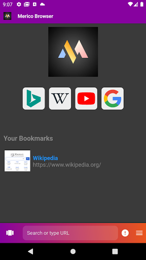 Trình duyệt web Merico - là trình duyệt web nhẹ, nhưng mạnh mẽ cho phép bạn lướt web một cách an toàn.Nó nhỏ như 3 MB, nhưng có thể tải một trang web lớn một cách hiệu quả.