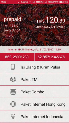 4. Berlangganan paket internet untuk digunakan baik di Hong Kong maupun di Indonesia.