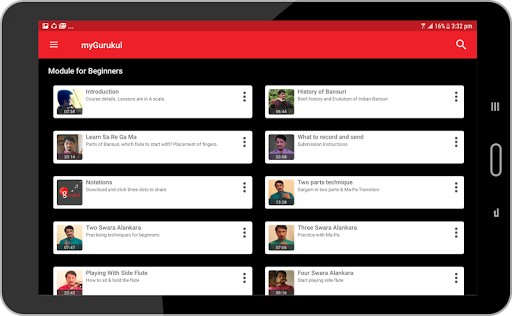 Trong khi có các mô-đun cá nhân từ người mới bắt đầu đến cấp độ tiến bộ, mygurukul đã ra mắt đầu tiên của Đức BANSURI