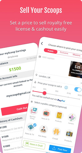 Ứng dụng MyScoop là một nền tảng kể chuyện và một thị trường nơi bạn có thể Chia sẻ cảnh quay di động chính hãng và kiếm tiền cho mỗi lần tải xuống.