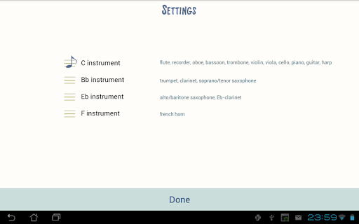 Đây là huấn luyện viên Solfege Ultimate cho saxophone, sáo, violin, guitar hoặc piano, hoặc bất cứ công cụ nào bạn chơi. Ứng dụng phát các bài tập mà bạn lặp lại trên nhạc cụ của mình và lắng nghe nếu bạn phát các ghi chú chính xác. Mức độ của các bài tập thay đổi từ rất dễ dàng để cực kỳ khó khăn. Không bao giờ được đào tạo Solawe rất nhiều niềm vui như với vở kịch của Victor Baumwolle của Tai Huấn luyện viên.