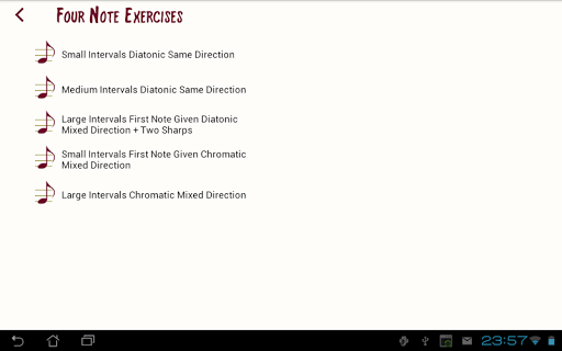 Bắt đầu với việc chơi một lưu ý Các bài tập diatonic trong quy mô C, hướng tới các bài tập Chromatic trong phạm vi rộng
