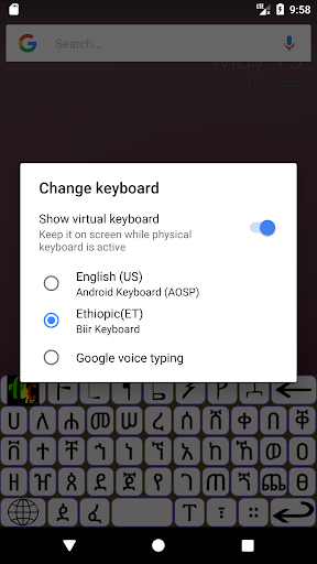 Biir (ብia) không yêu cầu người dùng biết bất kỳ ngôn ngữ có nguồn gốc Latin.Các ký tự cơ sở Ethiopic được trình bày theo thứ tự tự nhiên của họ.Các phiên bản đã sửa đổi được tạo bằng cách chạm vào các ký hiệu sửa đổi (được sắp xếp ở đầu theo thứ tự) sau ký tự cơ sở.አአርኛ ኦሮርኛ ኦሮ ት ት ት ት ት ት