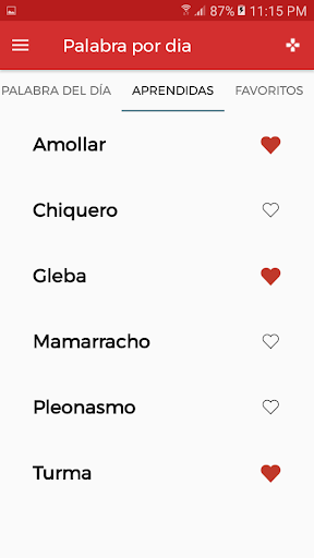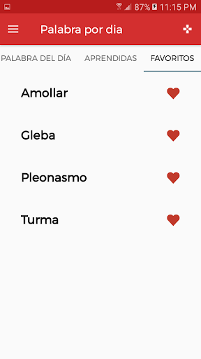Bạn sẽ có thể xem danh sách các từ đã học được với ý nghĩa của chúng, theo phong cách từ điển, và đến lượt bạn sẽ có một danh sách với tất cả các từ yêu thích của bạn để tham khảo ý kiến của bạn bất cứ khi nào bạn muốn! >