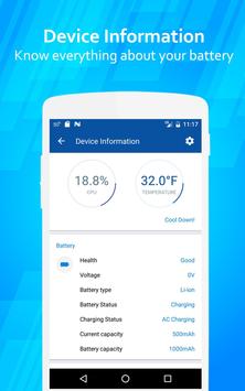 • Displays details: battery temperature, battery voltage, battery health