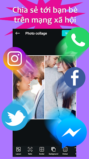 👉 Lưu ảnh ở độ phân giải cao và Ghép ảnh – Photo Collage cho phép bạn chia sẻ ảnh lên các mạng xã hội như Facebook, Messenger, Instagram, WhatsApp, …