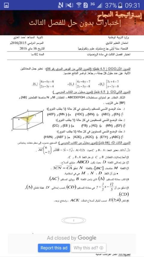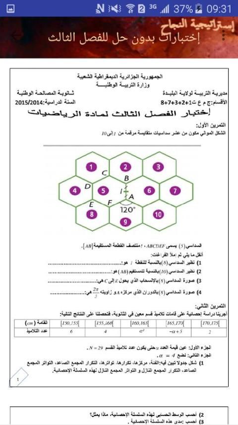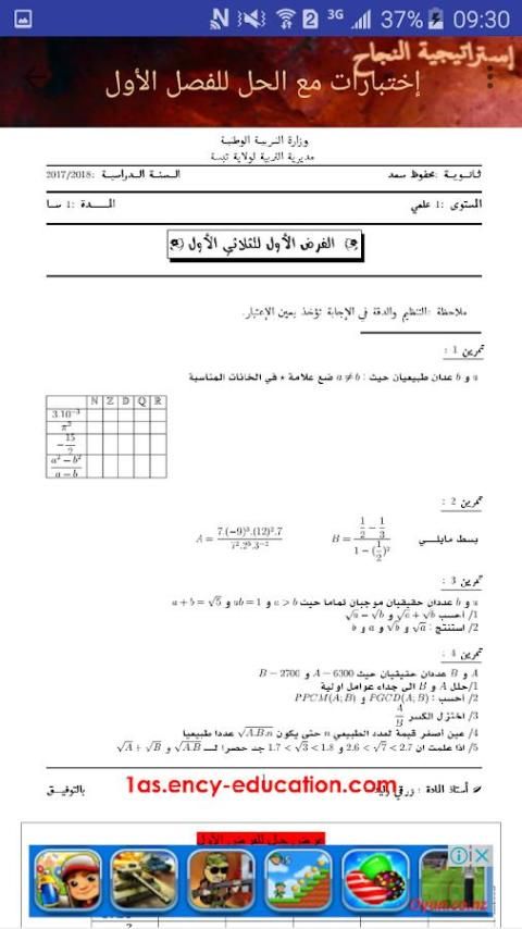 Mô tả của إختبارات رياضيات أولى ثانوي 1as