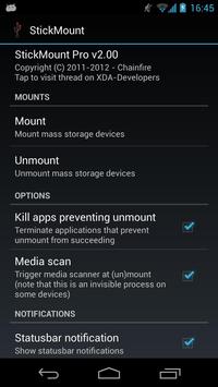 Automatically mount and dismount USB sticks on various devices like the Galaxy Nexus, Nexus 7 and Nexus 10. The Nexus 4 is not supported - this is an issue with the device, not with StickMount !