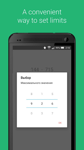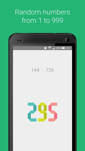 A simple and convenient random number generator. Click on the big colored numbers and get a random number in the given redistribution. • You can set a limit from 1 to 999. • Long numbers are conveniently generated by parts.