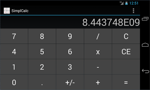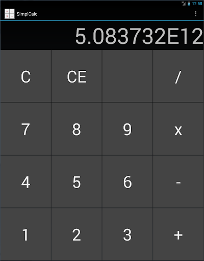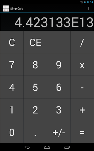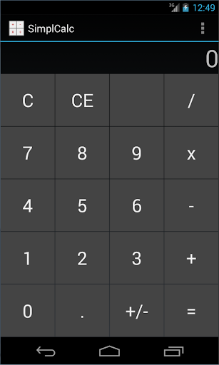 A basic, simple calculator. Designed to do simple calculations from a small app footprint. Requires no special permissions. Small install size! (less than 1 MB installed) Works in landscape or portrait modes.